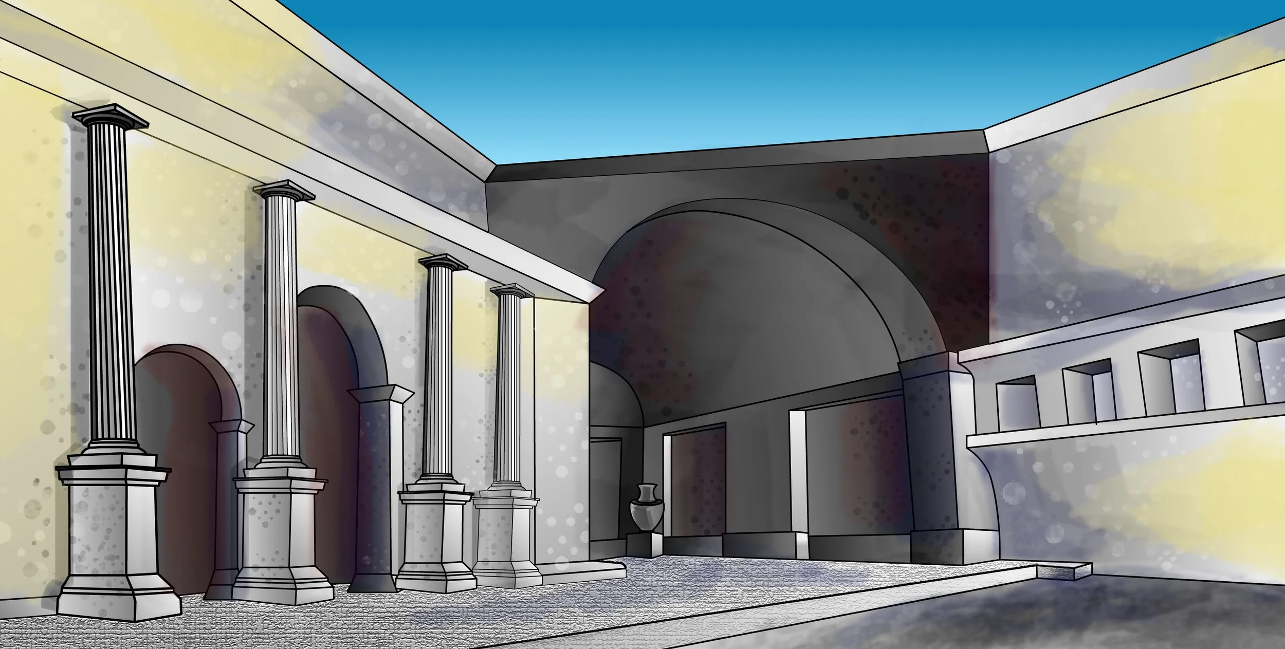 The majority of the backgrounds Pomeroy has created are simple, yet functional - serving the purpose of “setting the stage” and moving the story forward.